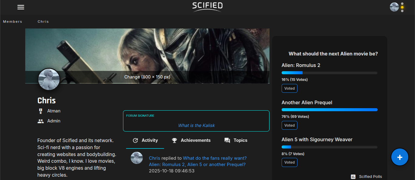 AdminAtmanOct-19-2025 3:11 PM58 Views0 RepliesThis weekend, I launched a massive update for Member Profiles on Scified. The layout has been improved significantly and new features have been ADDED!